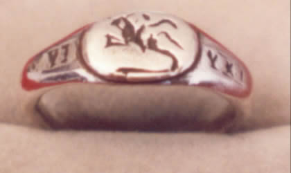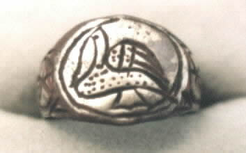 Silver Reproduction of a Legionary Auxiliary Epi Beta (Marine) Frank Shield Ring 4th century AD. Ring made of 925 silver from a mold of the original item. Only for the strongest the Legionary Marines of the Danube rowed their own ships. Wear this ancient crew members ring and row! Price: 75.00 US