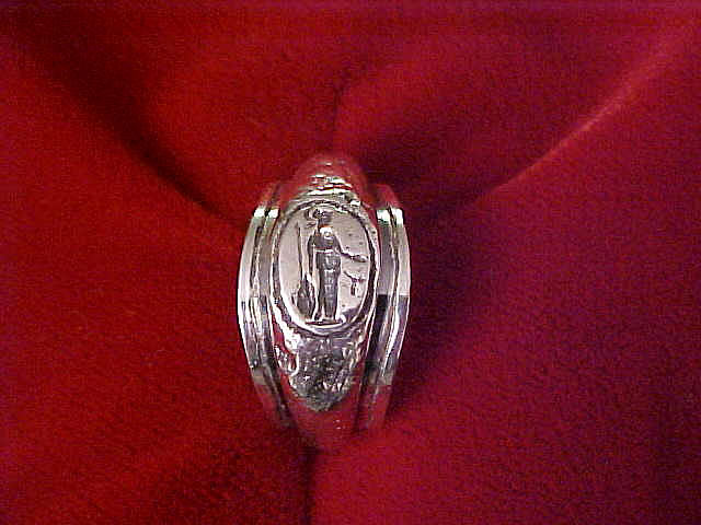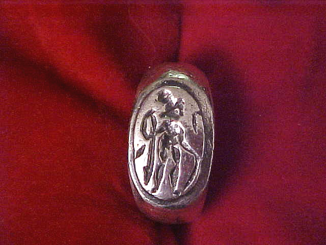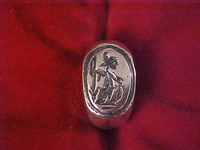 Ring is made of 925 silver from a mold of the original item and mounted on a hand crafted Roman Officer designer ring band. Put on the ring of this goddess' protection. Price: $125.00 US