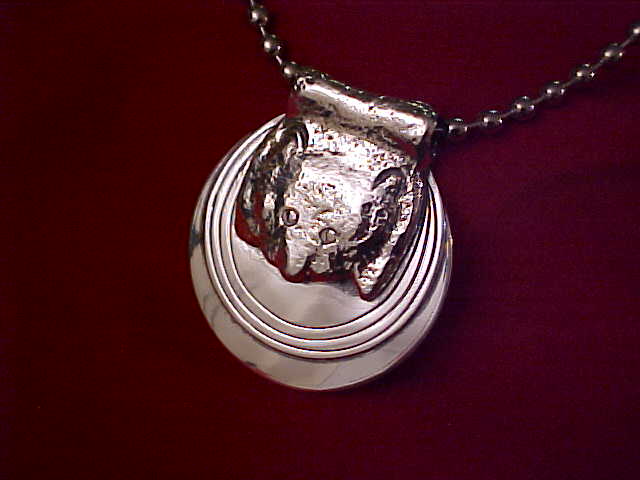 A 925 Silver Pendant 62 mm in Diameter With a Two Pronged
