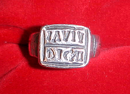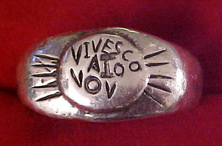 This ring reads VIVESCO AIO VOV and translates. To Become Alive I Say